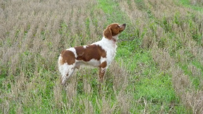Valbert à l'arrêt sur une bécasse et Elise 10 mois à patron